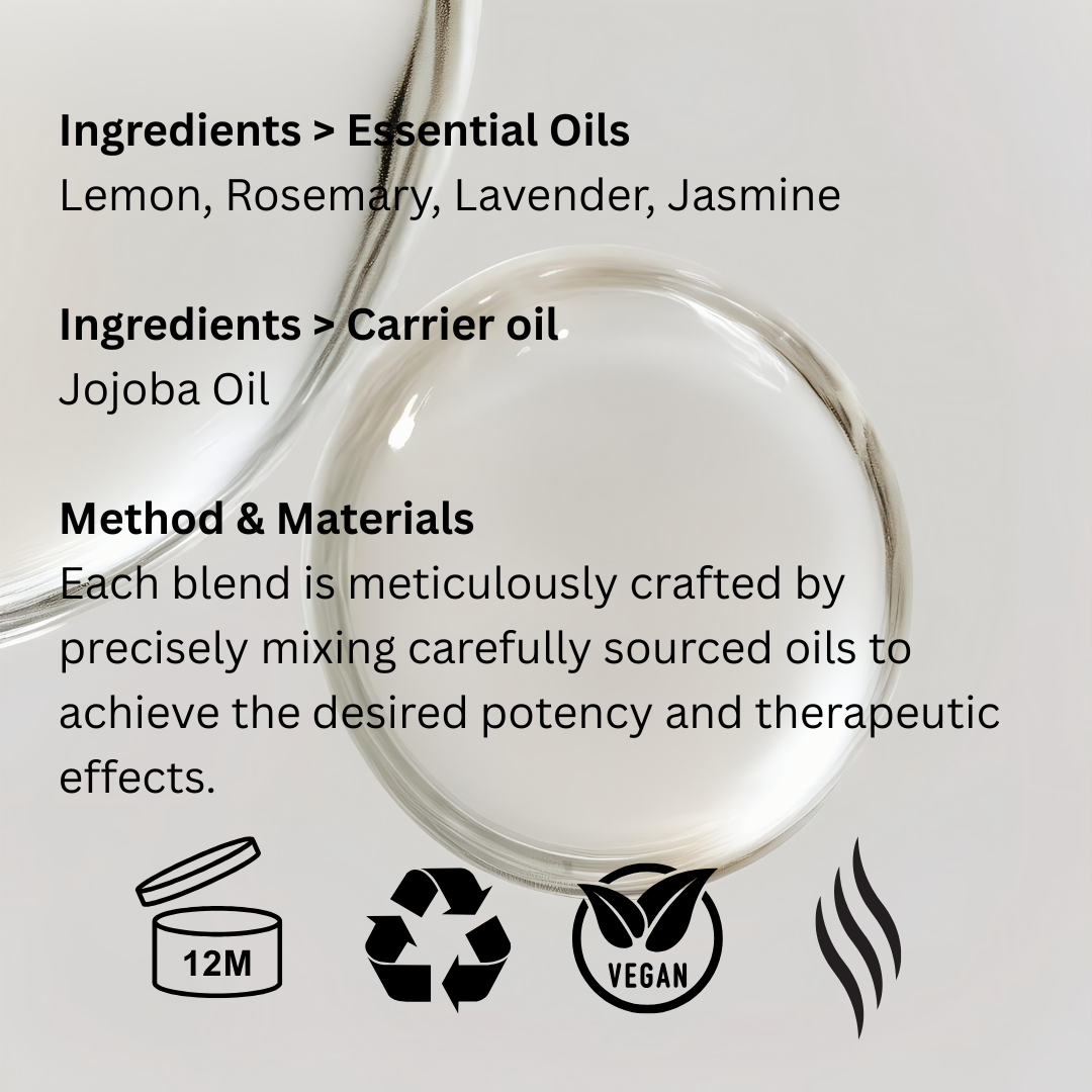 Apply the blend daily to balance and align the Third Eye chakra for enhanced intuition.